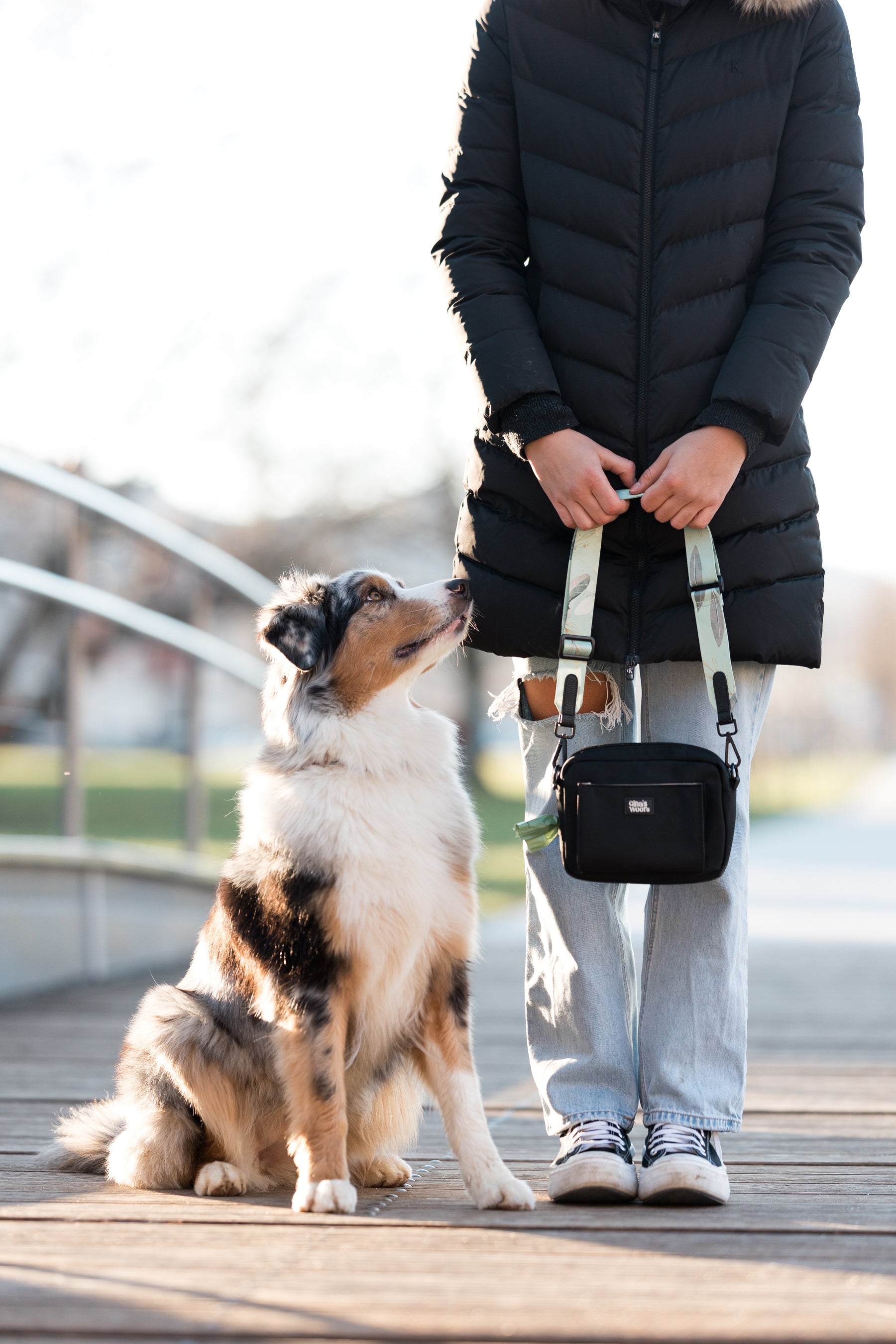 Toptoptop torbica. Prej sem imela vse v žepih in mi je 100x padla rolica z vreckami za kakce da je vse pomesan notri, priboljske sem vedno pozabila vzeti sabo na sprehod, mela sm cist polne žepe z kljuci telefonom itd. Zdej imam vse v eni torbici, pribolski se tako lepo lahko vzame ven da je super zdaj ko se ucimo na sprehodih. Vse imam skos pripravljeno in zdaj samo vzamem torbico in je to to.